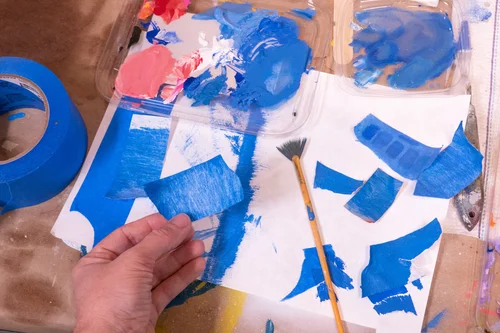 Fake Blue Tape, 2023. Embossed Tyvek, guache