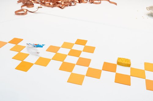 American Cheese Tiles and Sponge, 2024. Pigmented silicone, hydrocal, acrylic paint